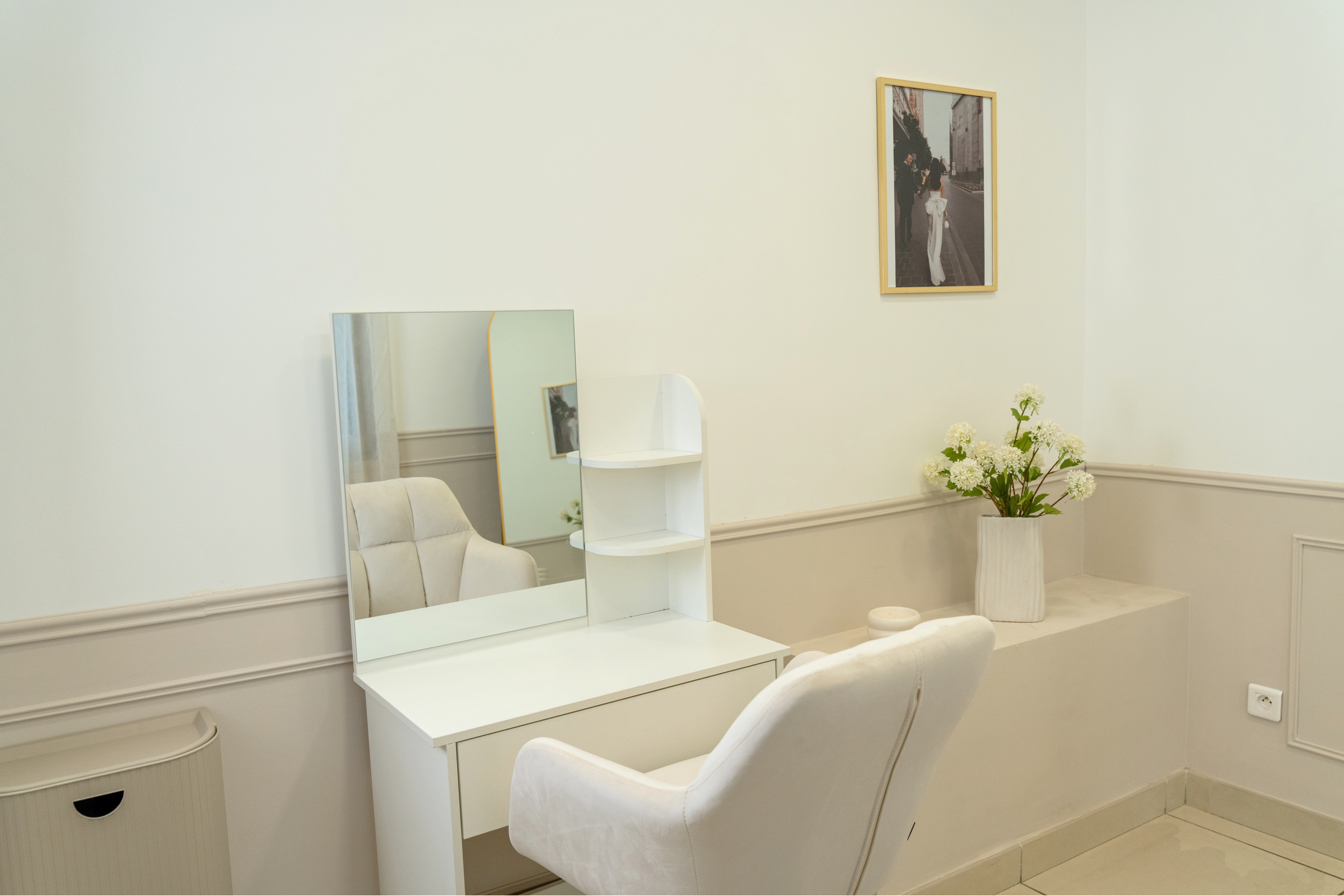 - Une coiffeuse spacieuse, permettant d’installer tout le matériel nécessaire.